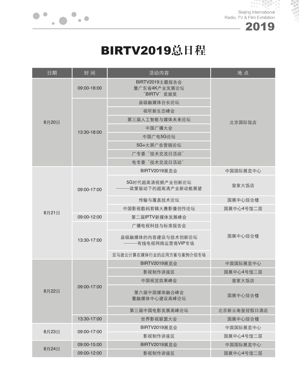 Birtv2019 展览会总日程